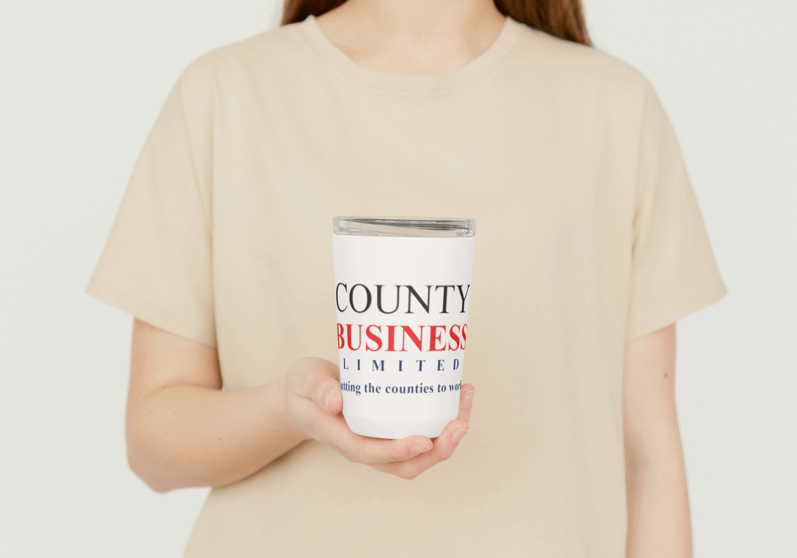 The County Business Cup is a sleek, durable drinking cup featuring the bold County Business Limited logo and slogan “putting the counties to work.” Perfect for the office, home, or on the move, this stylish cup is a great addition to your everyday essentials.